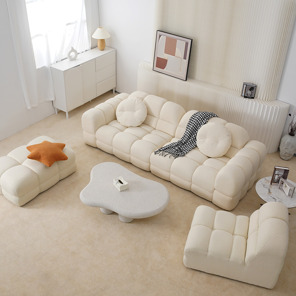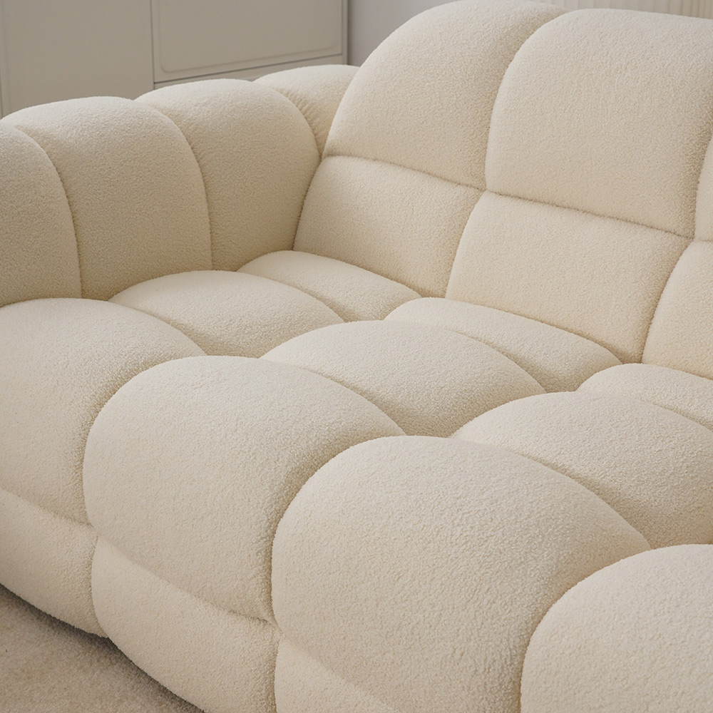 Méticuleusement fabriqué à partir des meilleurs matériaux, ce canapé blanc incarne l'élégance et la durabilité.Son tissu en velours peluche griffé, rappelant une prairie luxuriante, ajoute une touche de beauté naturelle.Le cadre de support robuste, fabriqué à partir de bois de mélèze de première qualité, garantit une fiabilité durable.